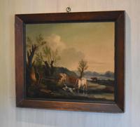 Antique Georgian Landscape Oil Painting Study of Figures, Horse and Pig Attributed to H Alken (1 of 2)