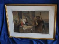 Antique Victorian Oil Painting Portrait of Physician in Surgery Treating Boy after Sir David Wilkie
