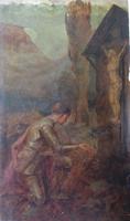 Antique Italian Oil Painting Portrait Study Entitled The Dice Players after Murillo