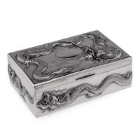 Large Antique Sterling Silver Shooting Scene Cigar or Trinket Box
