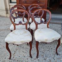 Set of Six Victorian Walnut Balloon Back Dining Chairs