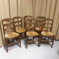 Antique French Set Of 4 Carved Oak Cane Dining Chairs