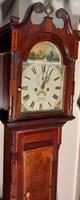 Outstanding Quality Antique Victorian Figured Mahogany Grandfather Clock with Painted Arched Dial and Moon Roller