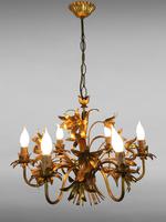 French Toleware & Crystal 6 Light Chandelier