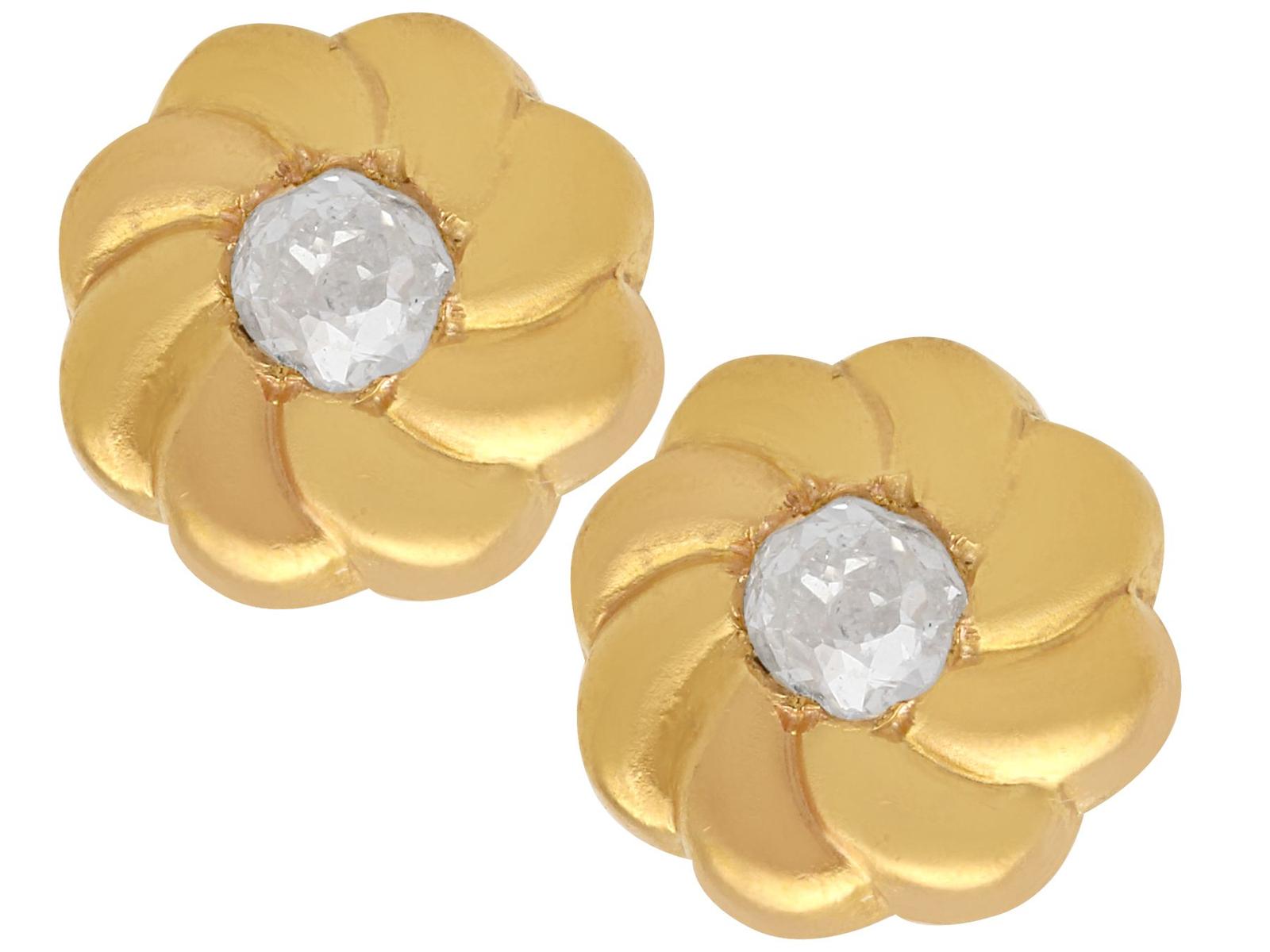 0.12ct Diamond & 18ct Yellow Gold Earrings - Antique c.1920 (1 of 9)