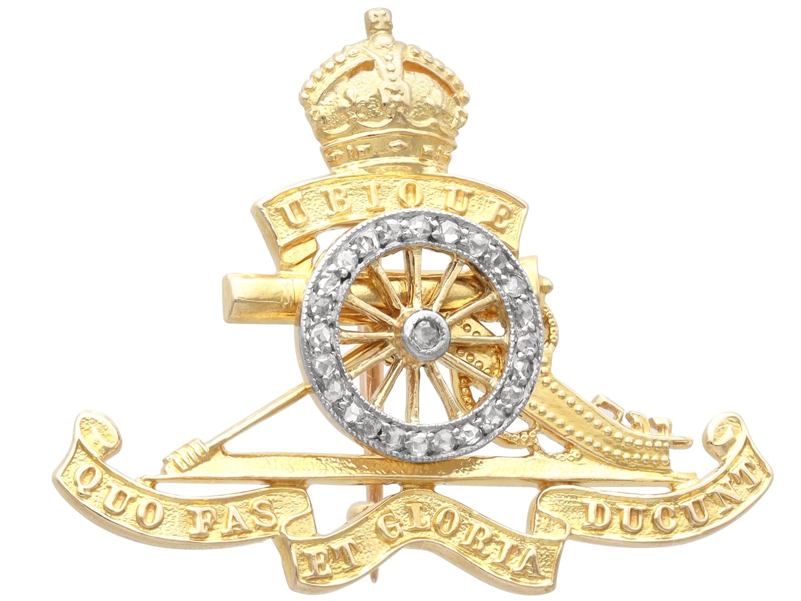 0.22ct Diamond & 18k Yellow Gold Royal Artillery Brooch c.1930
