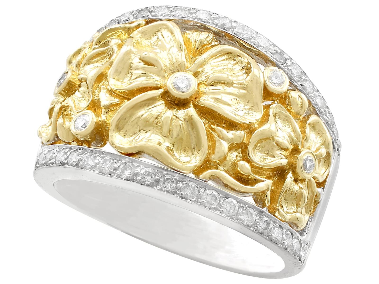 0.50ct Diamond & 18ct Yellow & White Gold Dress Ring - Vintage c.1980 (1 of 9)