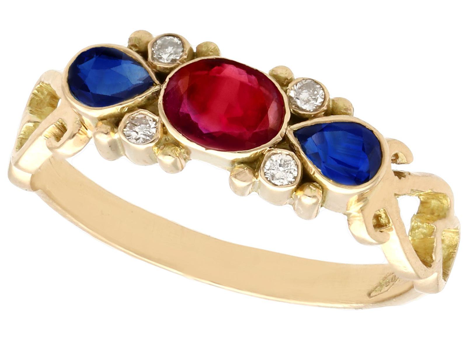 0.50ct Ruby, 0.32ct Sapphire & Diamond, 18ct Yellow Gold Dress Ring - Vintage c.1940 (1 of 9)