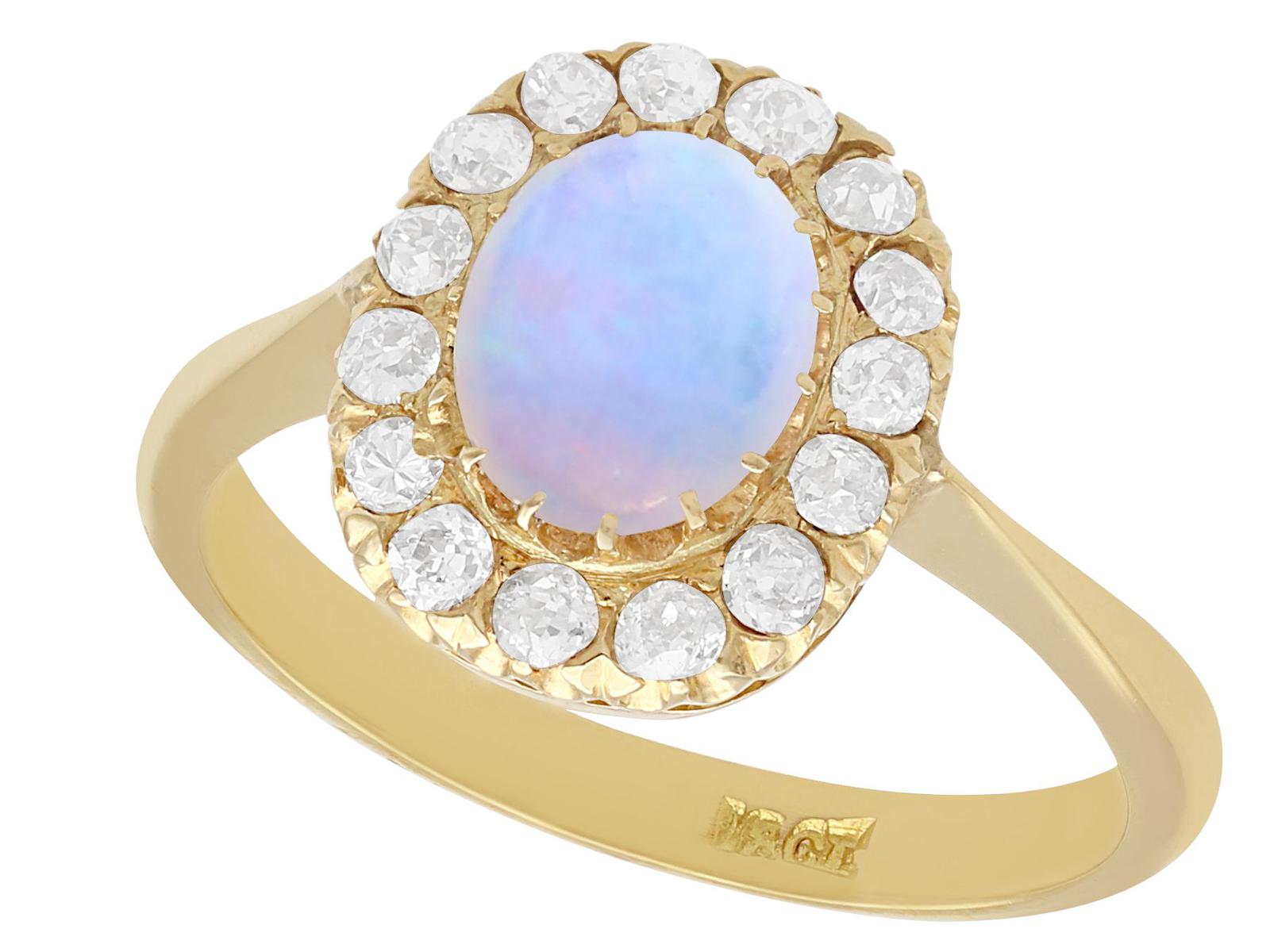 0.68ct Opal & 0.48ct Diamond, 18ct Yellow Gold Cluster Ring - Antique c.1920 (1 of 9)