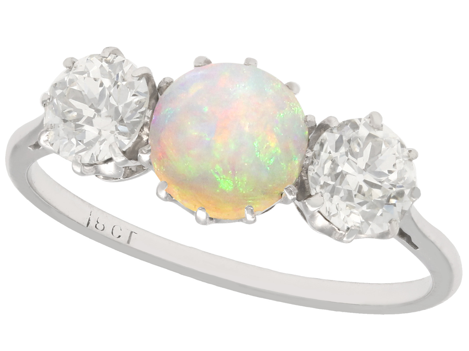 0.73ct Opal & 1.08ct Diamond, 18ct White Gold Trilogy Ring C.1920 (1 of 9)