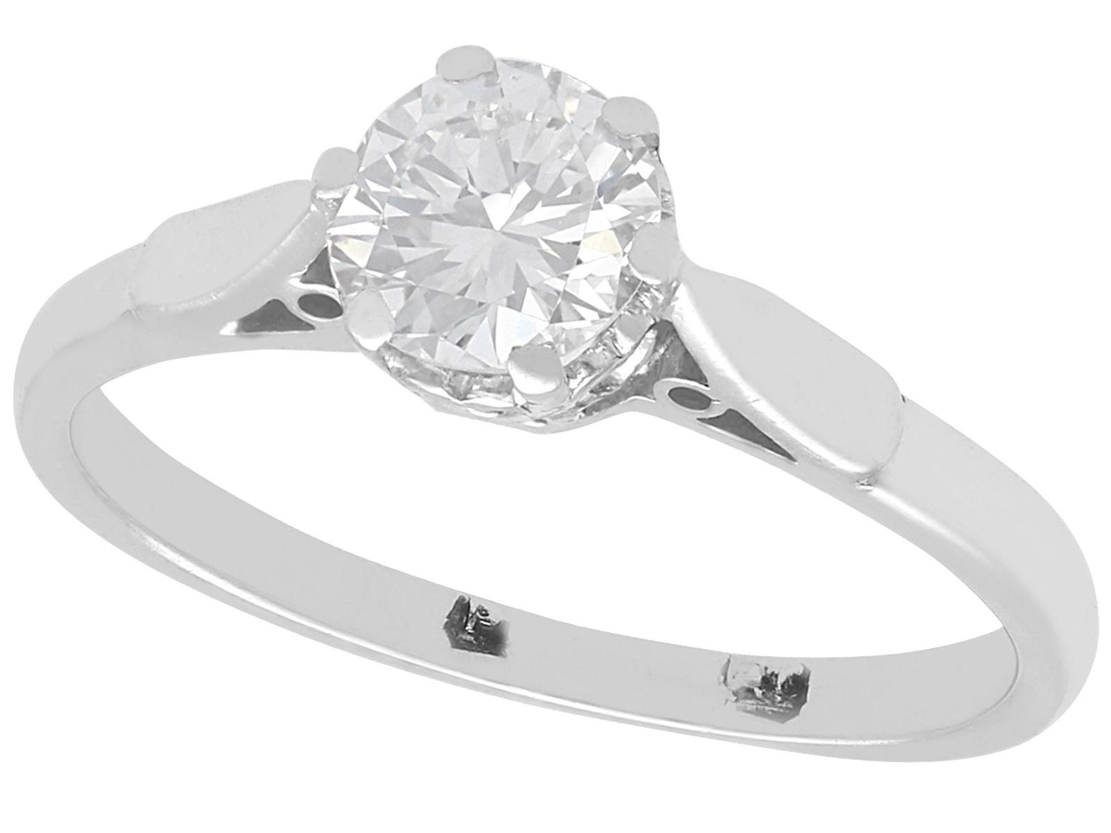 0.79 ct Diamond & 9ct White Gold Solitaire Ring - Vintage c.1940