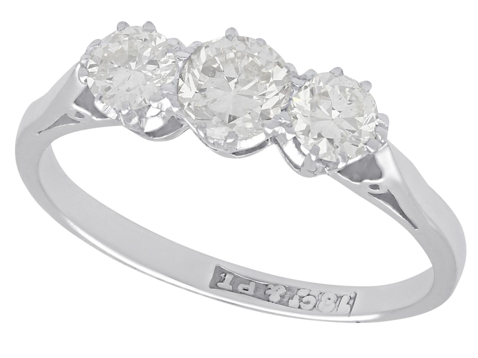 0.80ct Diamond & 18ct White Gold Three Stone Ring - Antique c.1920 (1 of 9)