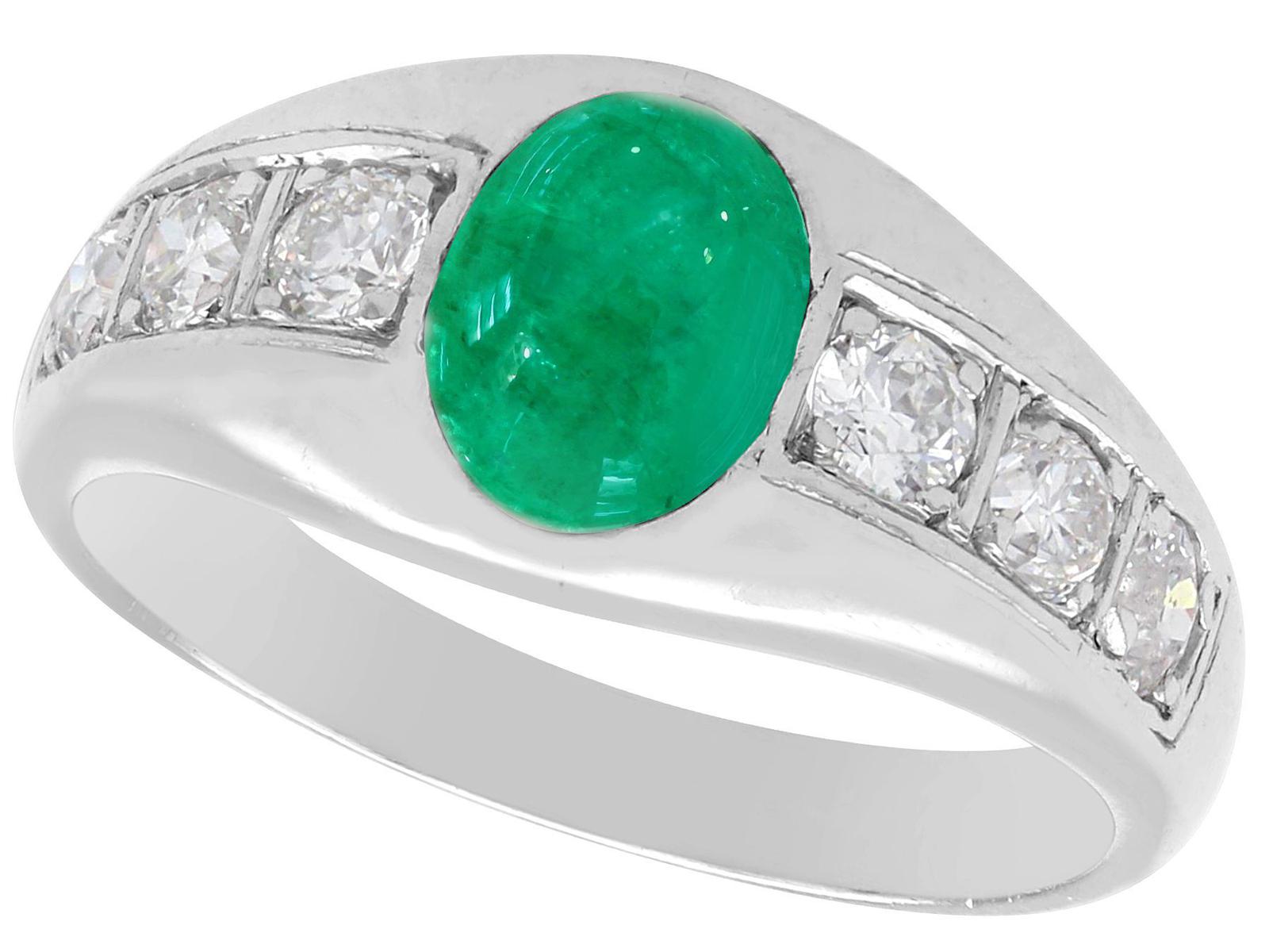 0.85ct Emerald & 0.30ct Diamond, Platinum Dress Ring - Vintage c.1940 (1 of 9)