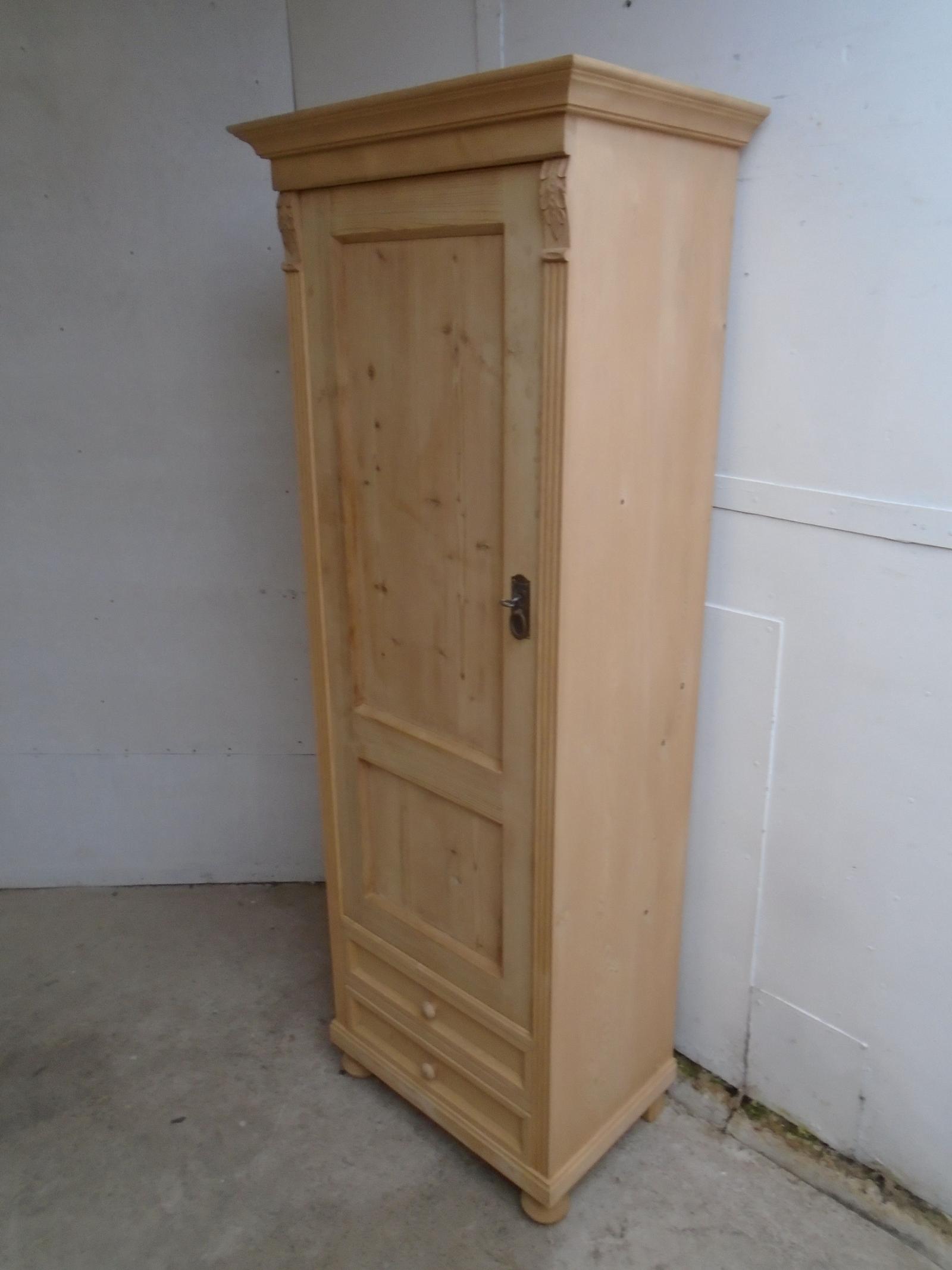 1 Door 2 Drawer Antique Pine Child's / Holiday Let Wardrobe to wax / paint