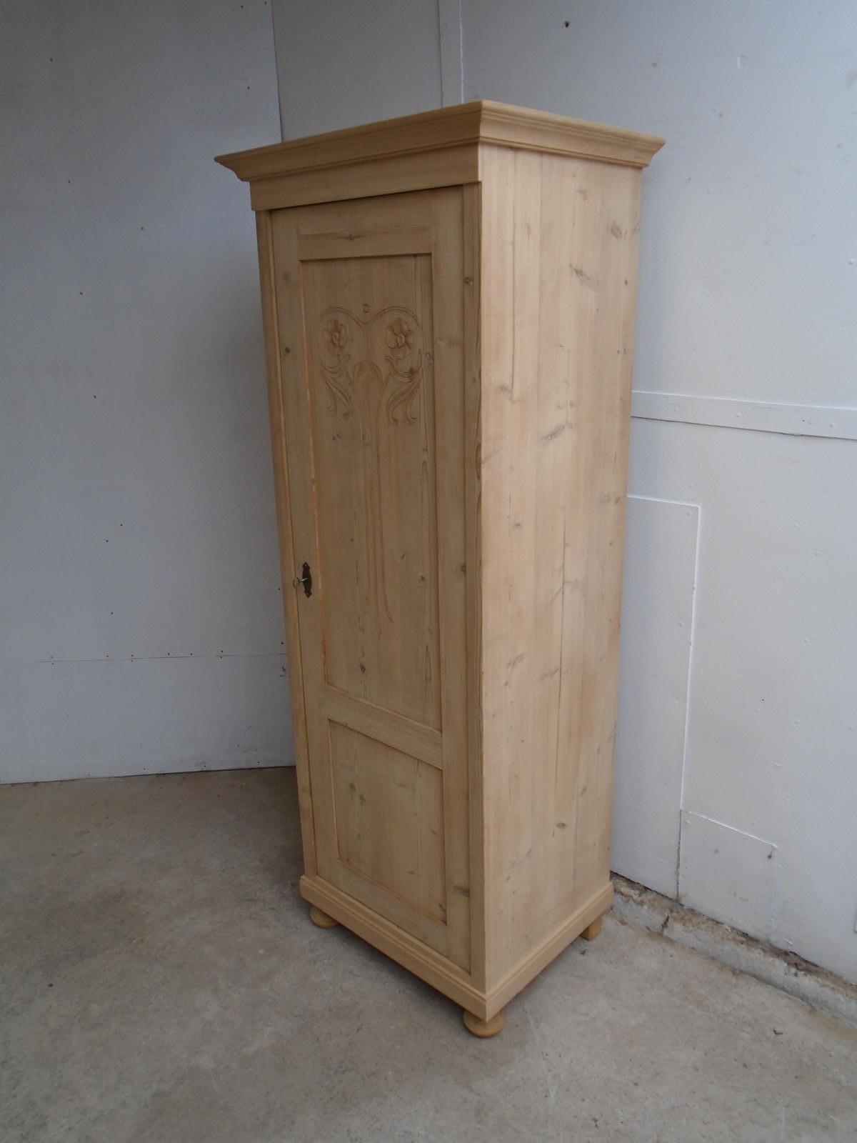 1 Door Carved Antique Pine Kitchen / Linen Storage Cupboard to wax / paint