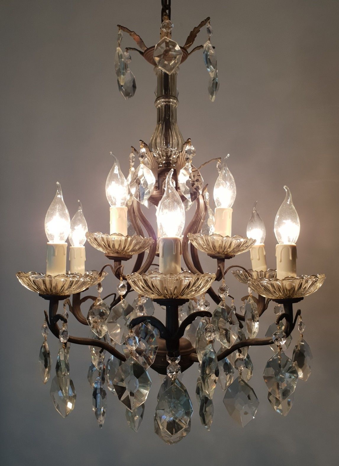 10 Arm Gilt Brass Birdcage Crystal Chandelier Fully Rewired & Restored
