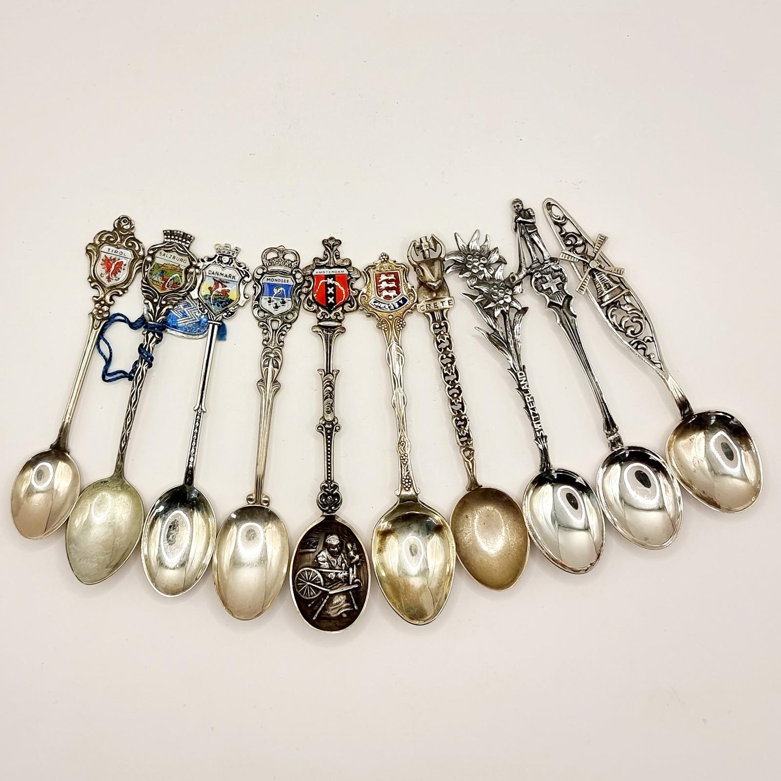 10 Silver Enamel Souvenir Collectors Tea Spoon