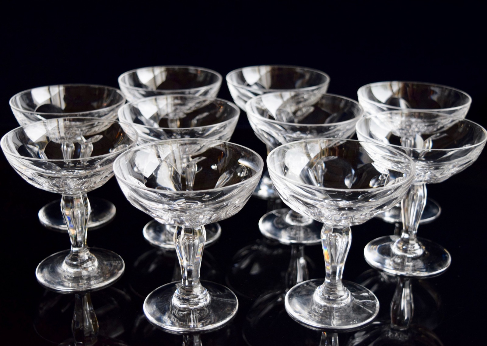 10 Val St Lambert Champagne Glasses with Plumed Air Bubble Stems
