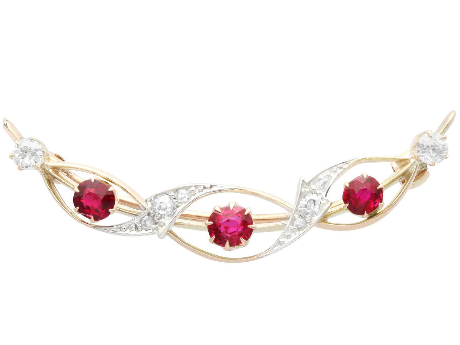 1.01ct Ruby & 0.66ct Diamond, 12ct Yellow Gold Brooch - Antique Victorian (1 of 9)