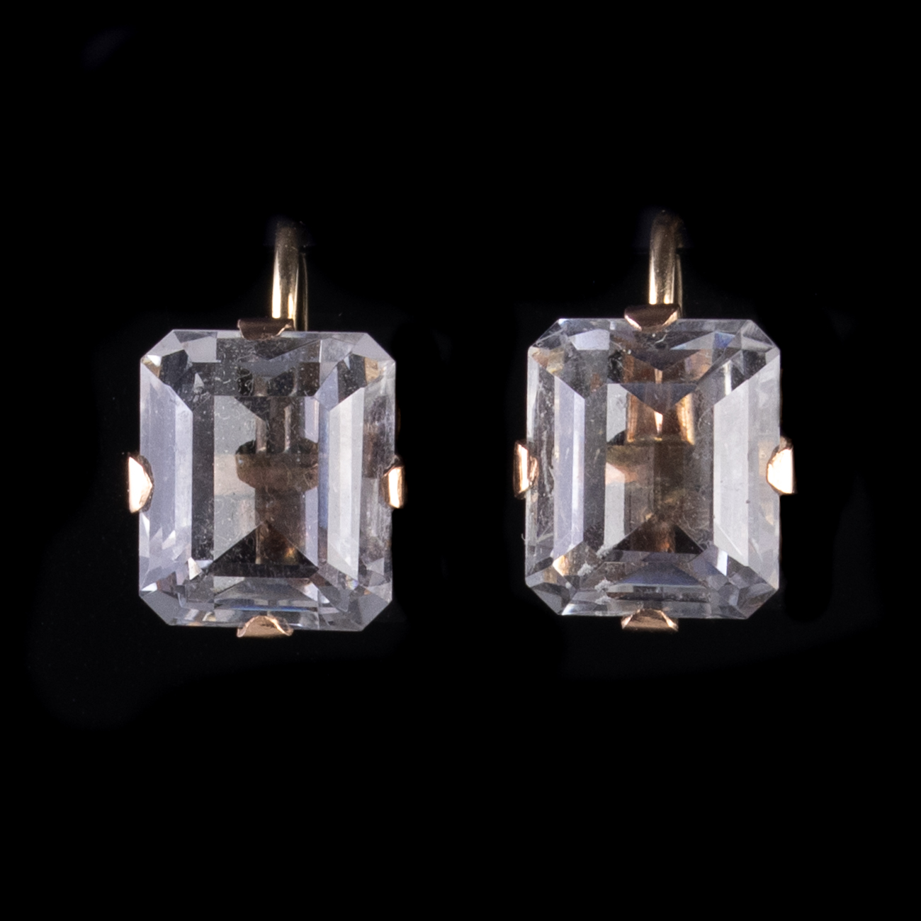 10ct Rock Crystal Screw Back Earrings 9ct Yellow Gold