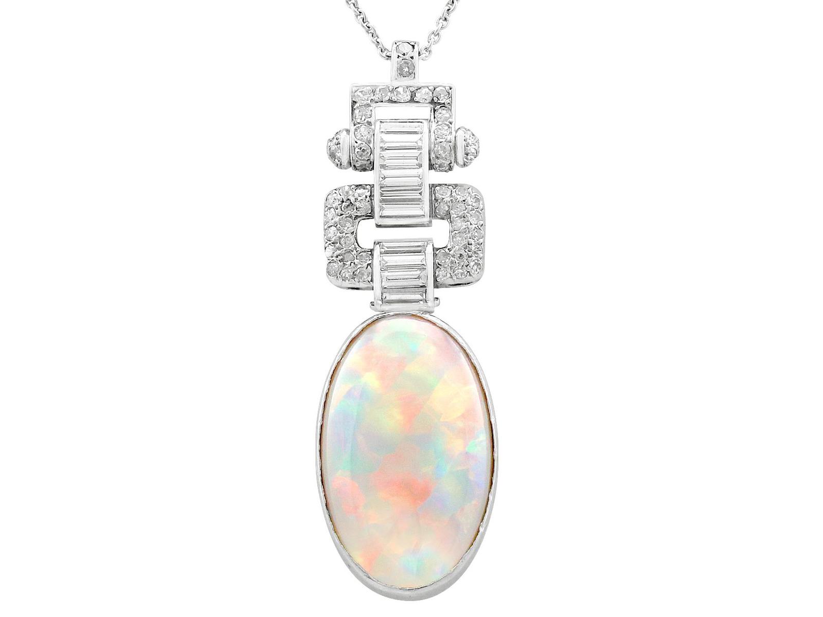 11.93ct Opal & 1.93ct Diamond, Platinum Pendant - Art Deco - Vintage c.1940 (1 of 9)
