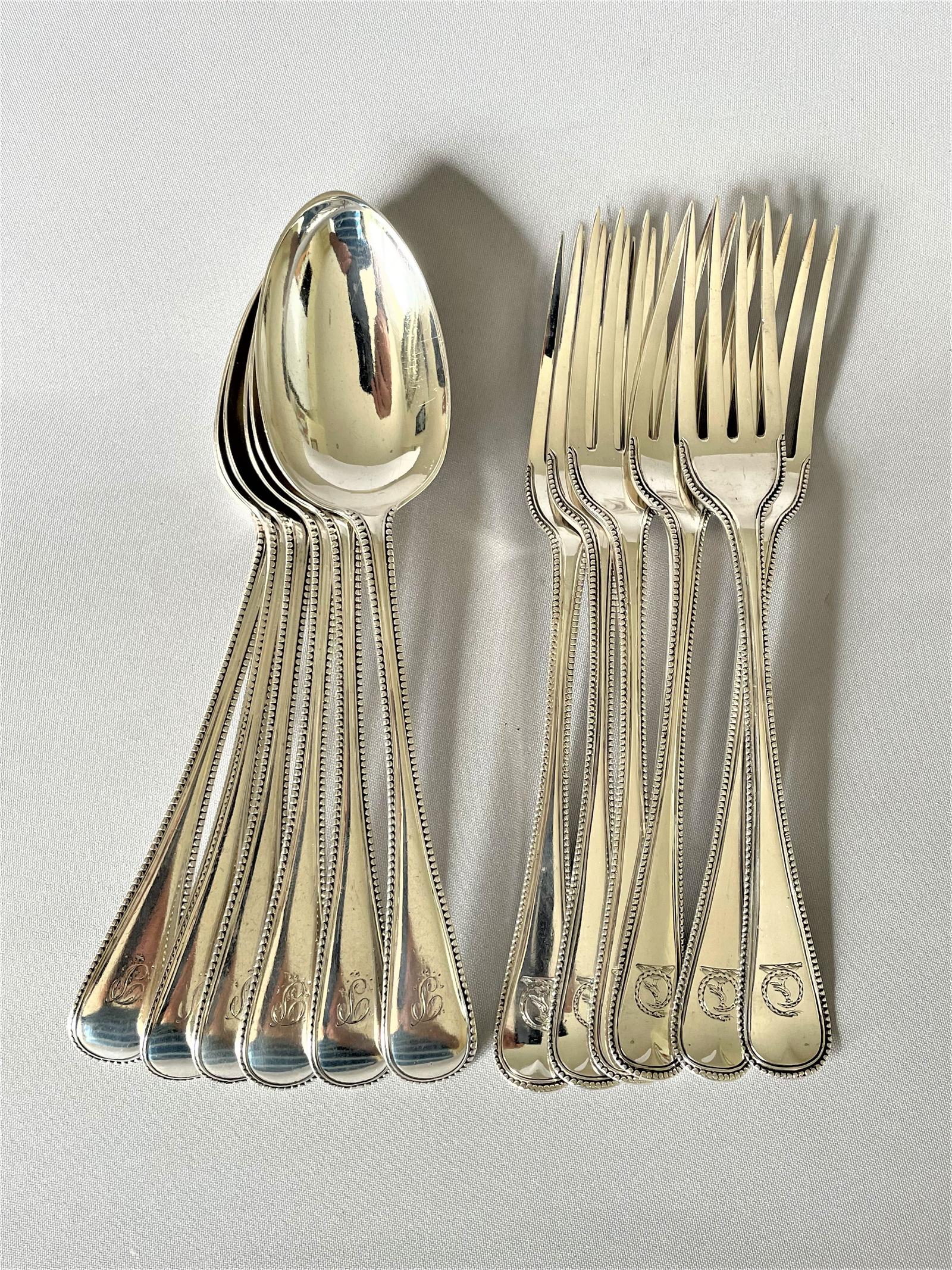 12 Piece Victorian Silver Dessert Service in Bead Pattern (1 of 12)