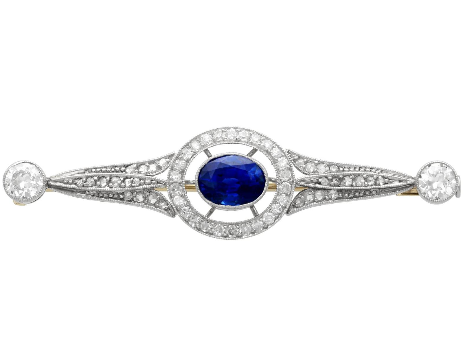 1.25ct Sapphire 2.34ct Diamond & Platinum Brooch c.1925 (1 of 13)