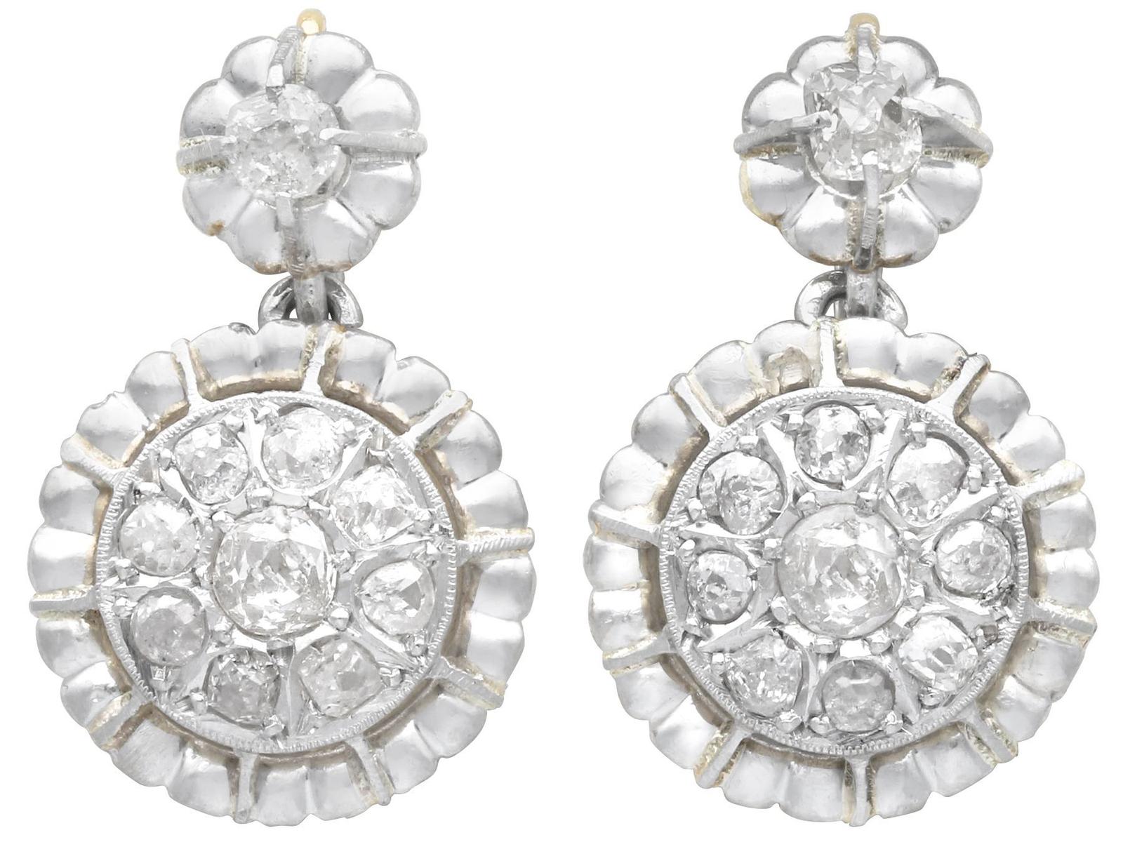 1.26ct Diamond and 18ct Yellow Gold Drop Earrings - Antique Circa 1930 (1 of 9)