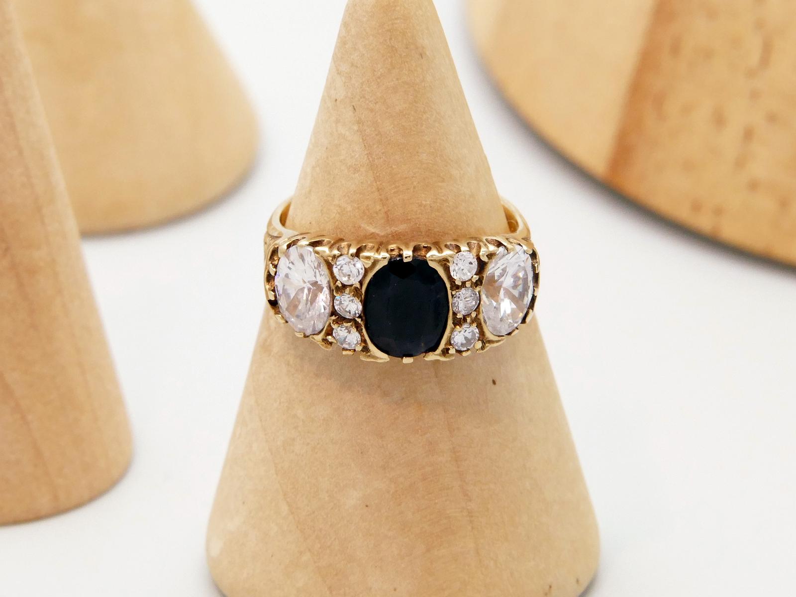1.2ct Blue Sapphire & Natural Zircon Gold Ring Hallmark 1970