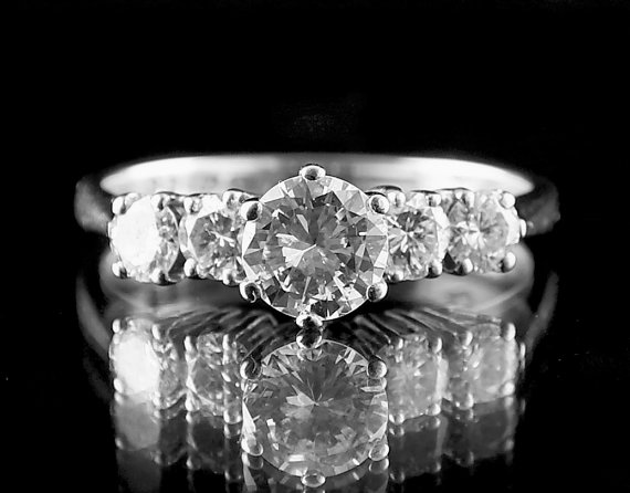 1.2ct Diamond Ring 18 carat White Gold & Platinum 5 Stone Engagement, anniversary Ring 5.5 (US) L (UK)