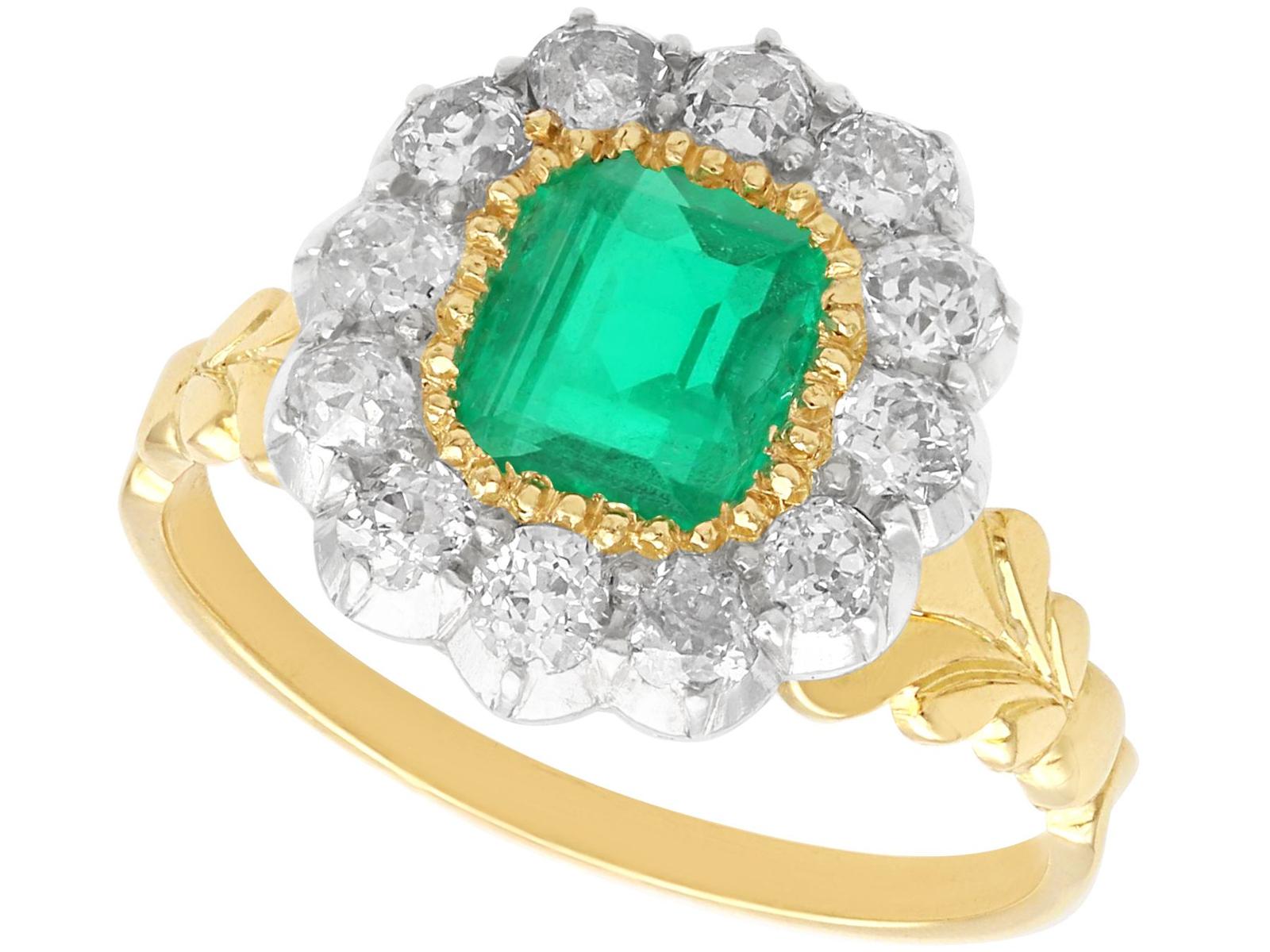 1.31ct Emerald & 0.98ct Diamond, 18ct Yellow Gold Dress Ring - Antique (1 of 9)