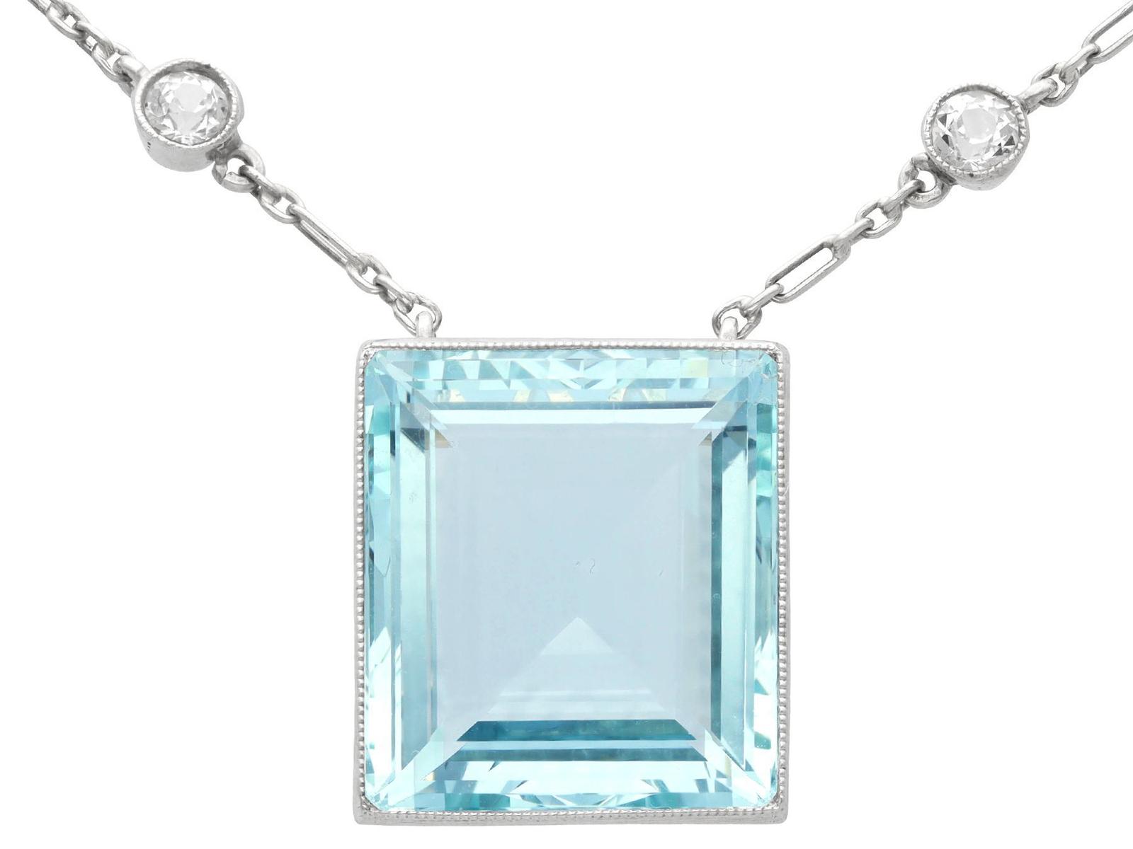 13.54ct Aquamarine, 0.26ct Diamond & 12ct Yellow Gold Pendant - Russian c.1935 (1 of 9)