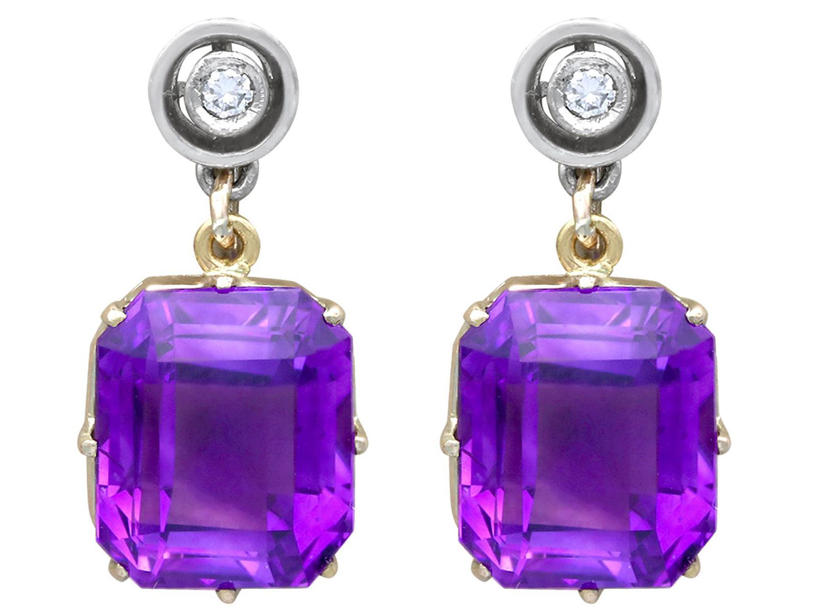 13.68ct Amethyst, 0.04ct Diamond & 18ct White Gold Drop Earrings - Vintage c.1940 (1 of 9)
