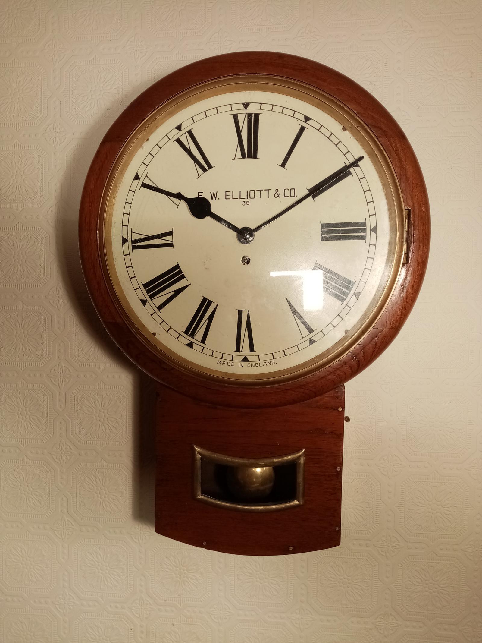 14" Mahogany, Elliott, Drop-dial Fusee Wall Clock