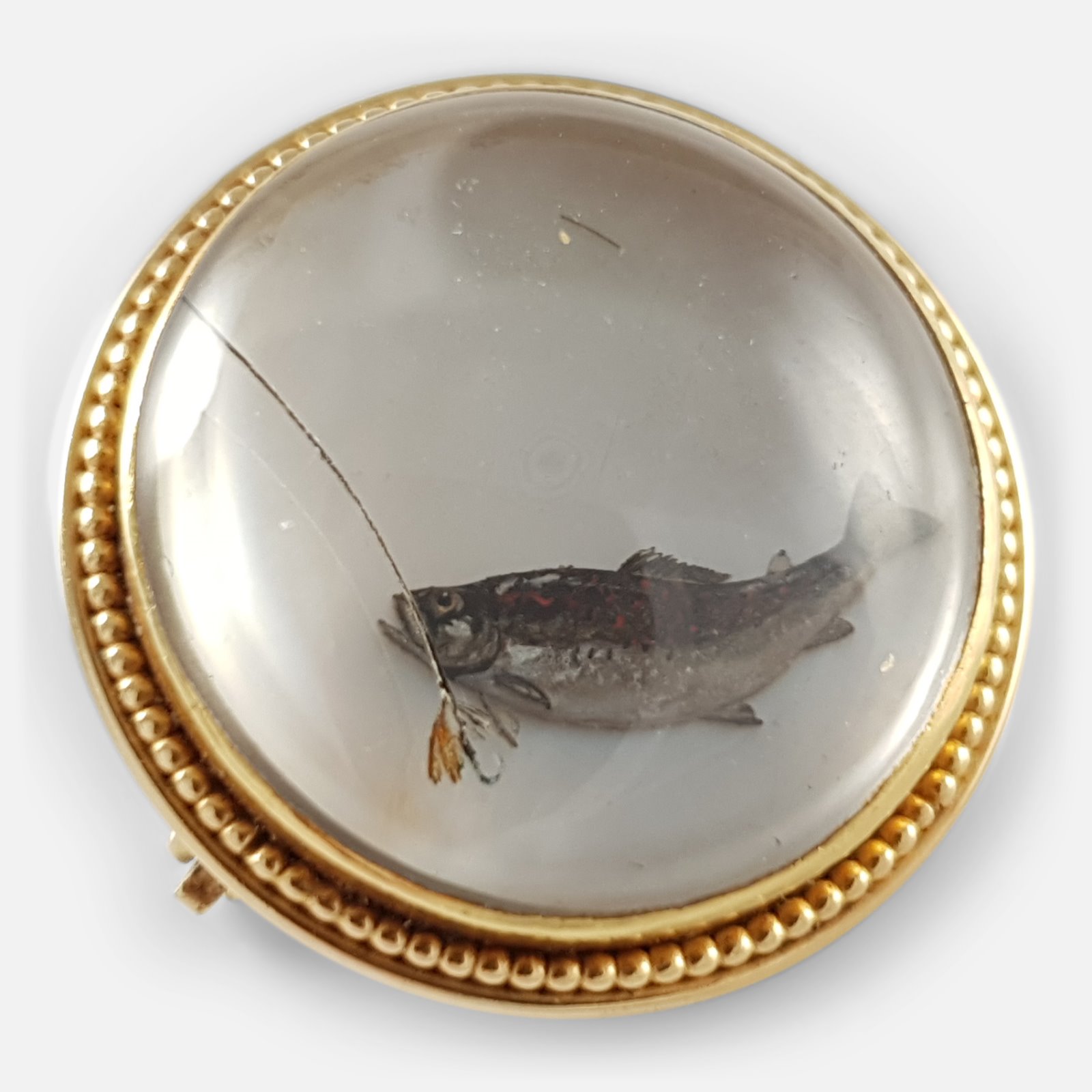 14ct Reverse-Carved Crystal Intaglio Fishing Brooch c.1920