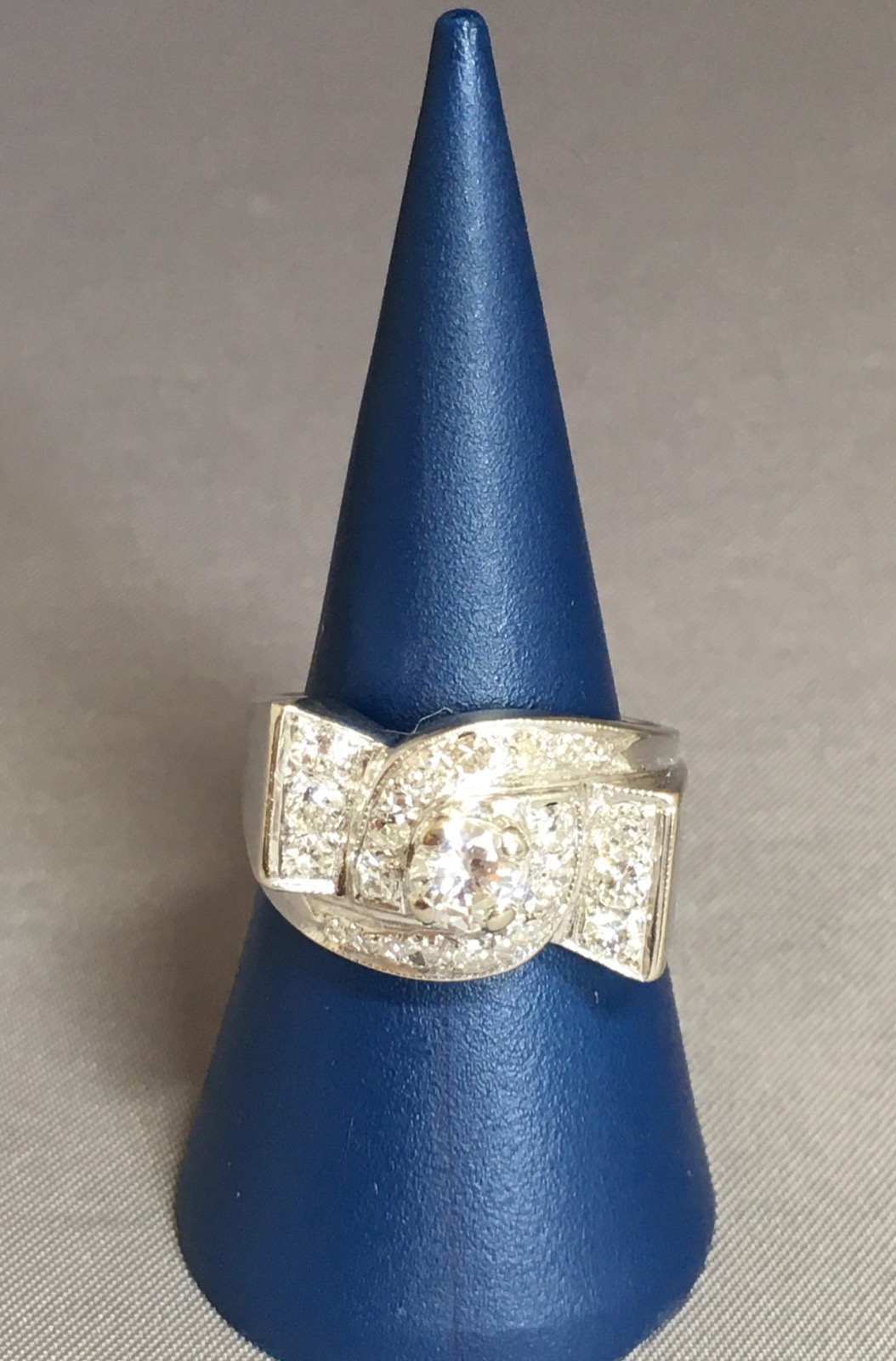 14K White Gold & Diamond Dress Ring. American c.1940s