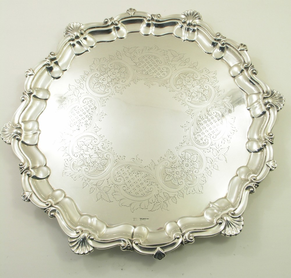 15" Diameter Solid Silver Salver Tray 1901