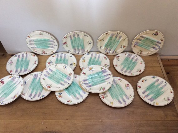 15 French Vintage Majolica Asparagus Plates by Pompadour Longchamp VGC