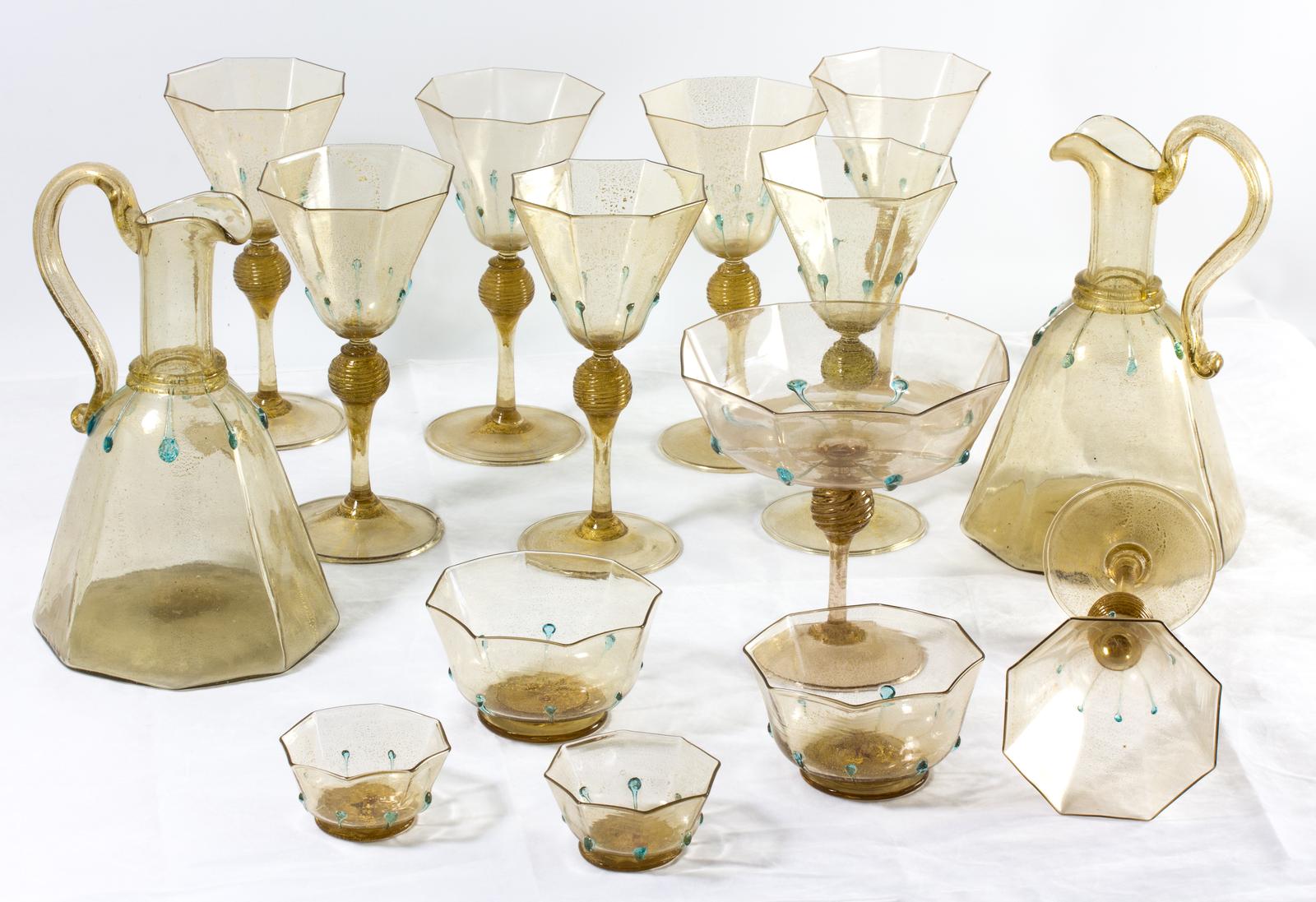 15 Piece Murano Aventurine Octagonal Wine Set c.1925