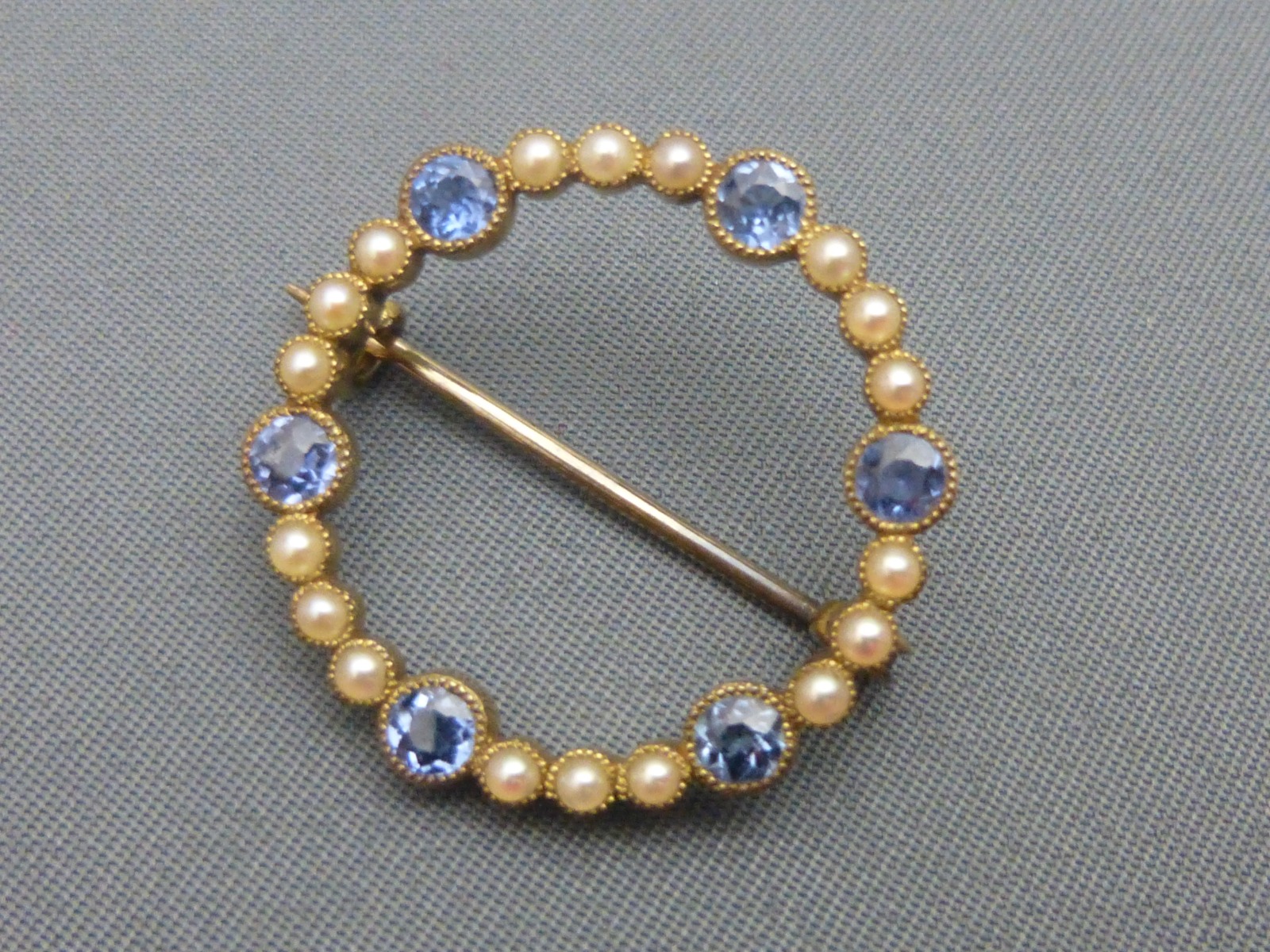 15ct Gold, Sapphire & Pearl Brooch c.1920