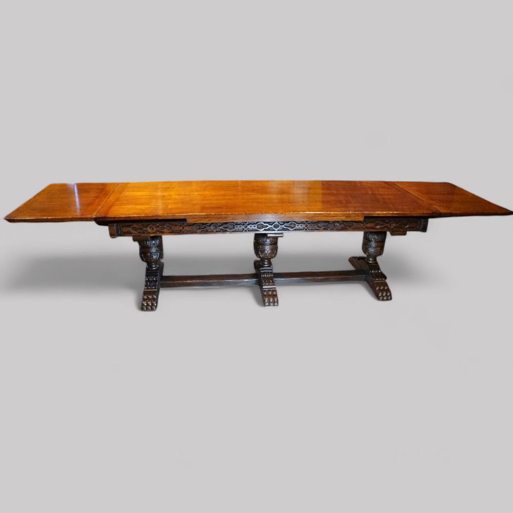 16 Seat Oak Refectory Draw Leaf Dining Table