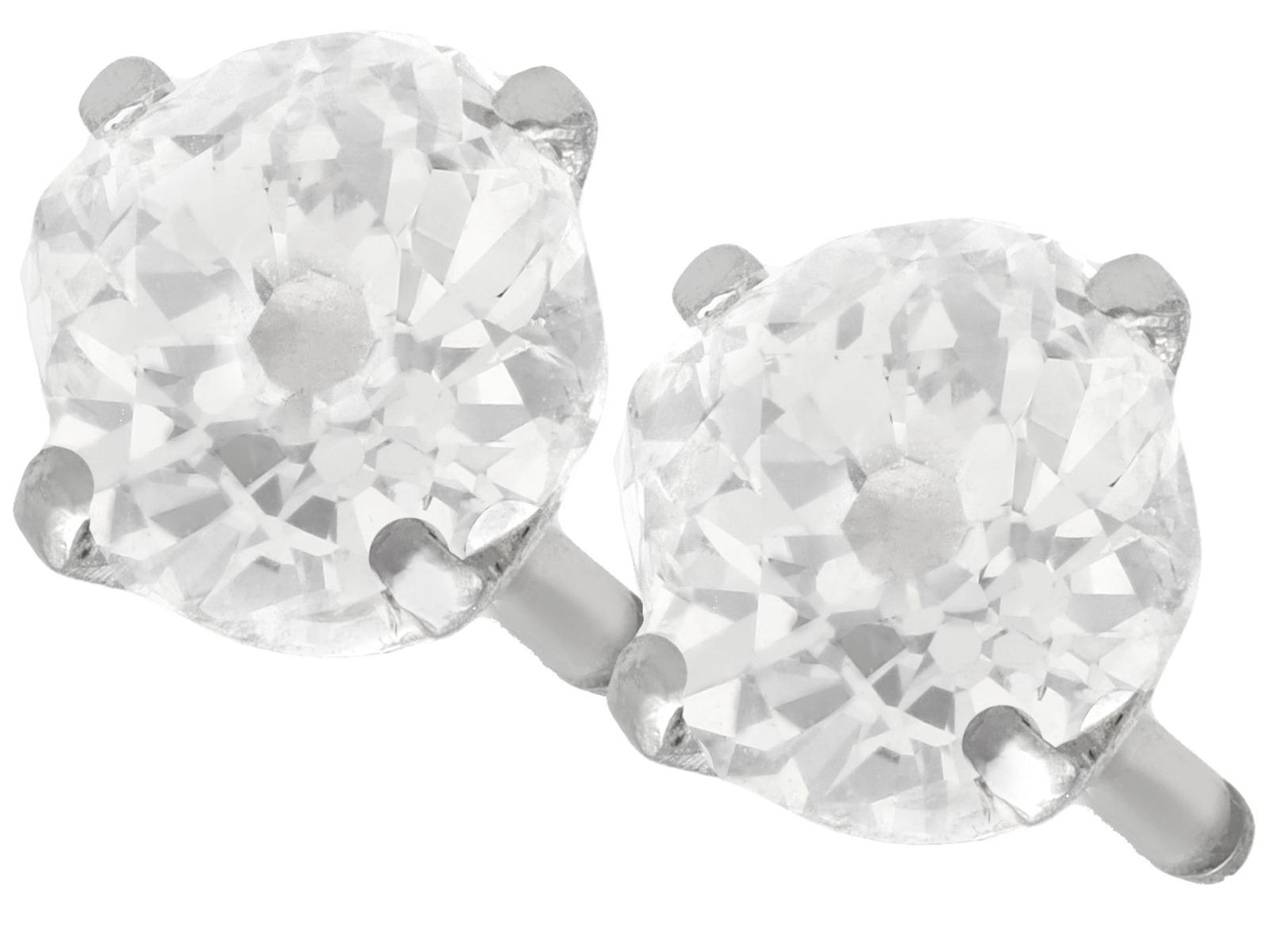 1.61ct Diamond & 18ct White Gold Stud Earrings - Antique (1 of 6)