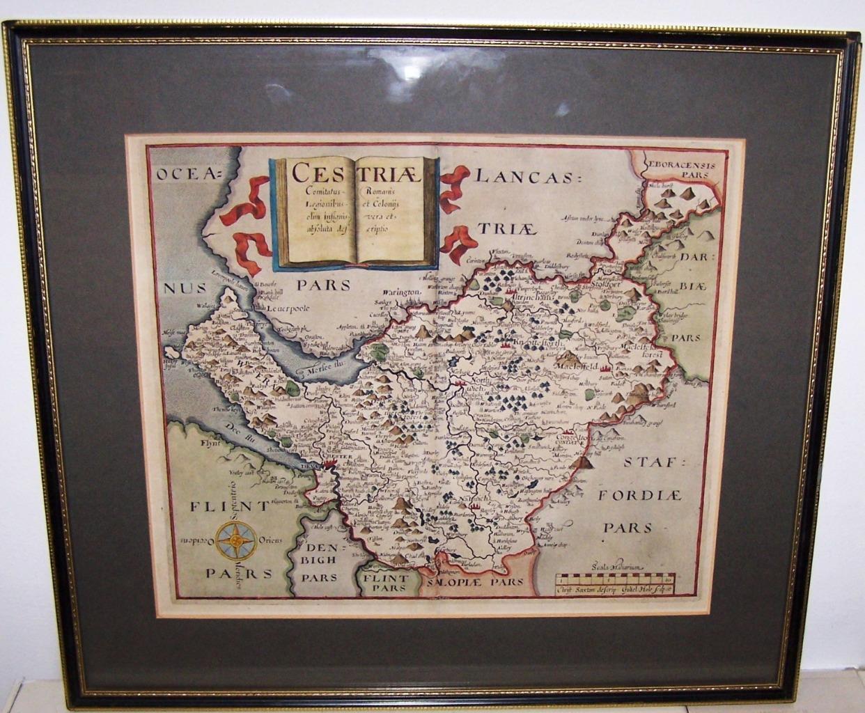 1620 Copper Engraved Map of the County of Cheshire by Saxton & Hole