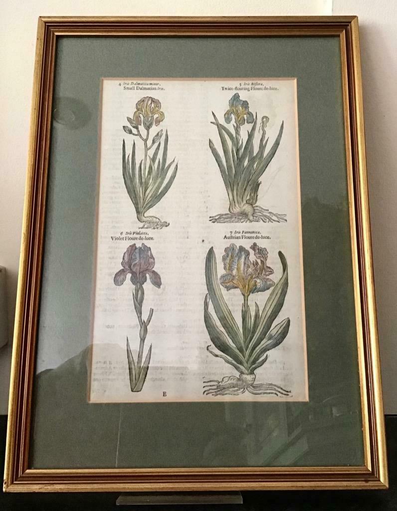 16th Century Floral Engraving from Gerard’s Herbal Hand Coloured & Framed