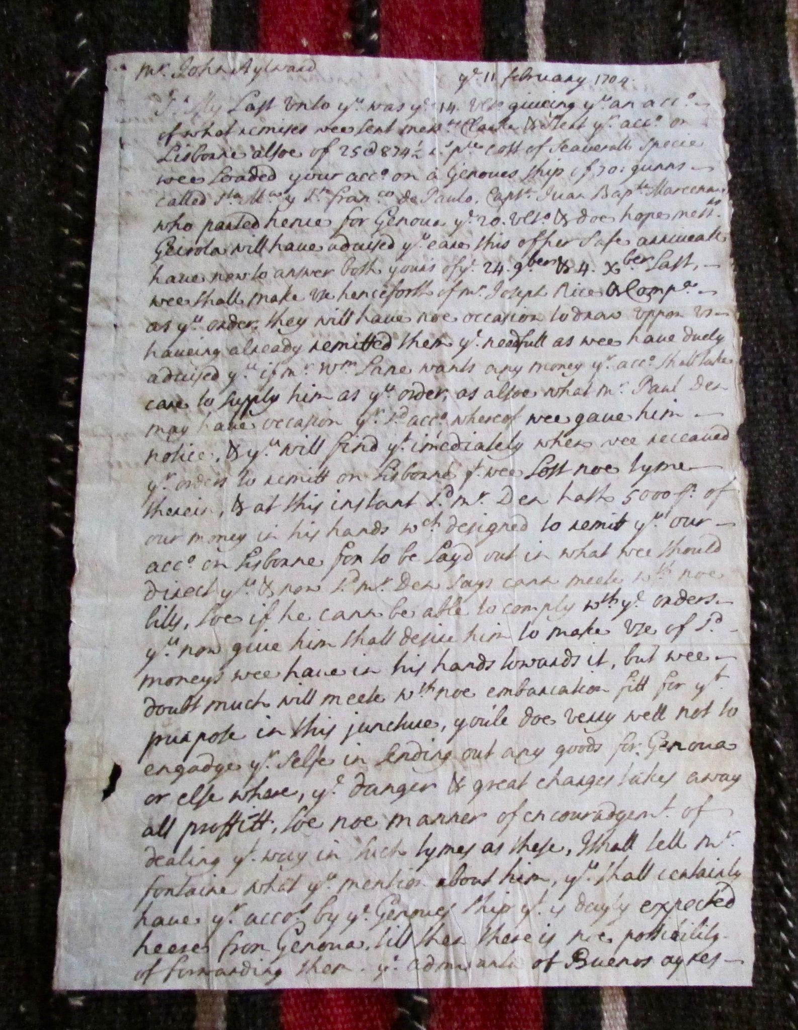 1704 Hand Written Letter by John Aylward Importer Exporter in Sea Trade (1 of 6)
