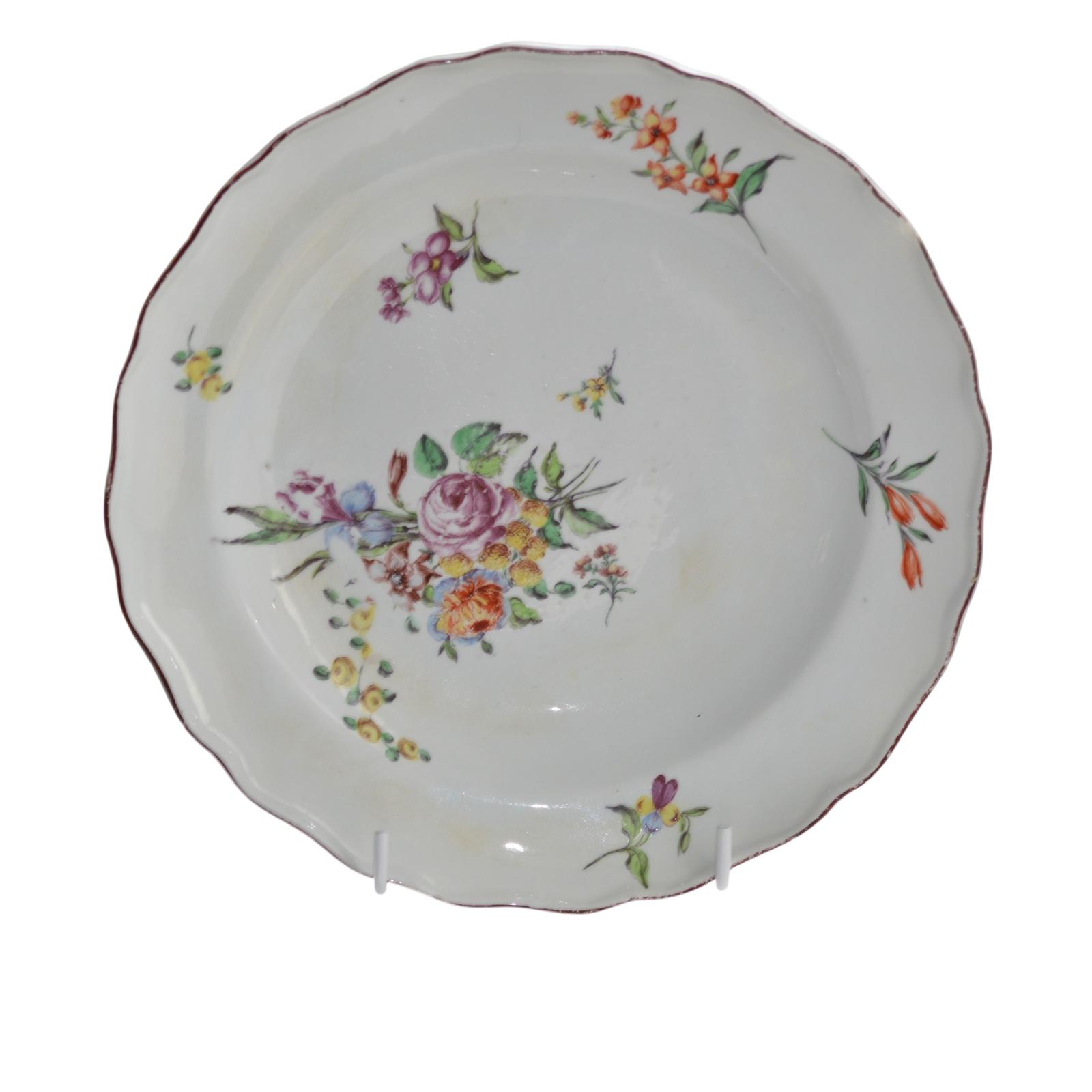 DLS Antiques has clarified that the 1752-1776 Chelsea Shaped Deep Plate - Floral Sprays (LA570168) is genuinely of the period declared with the date/period of manufacture being 1752 / 1756