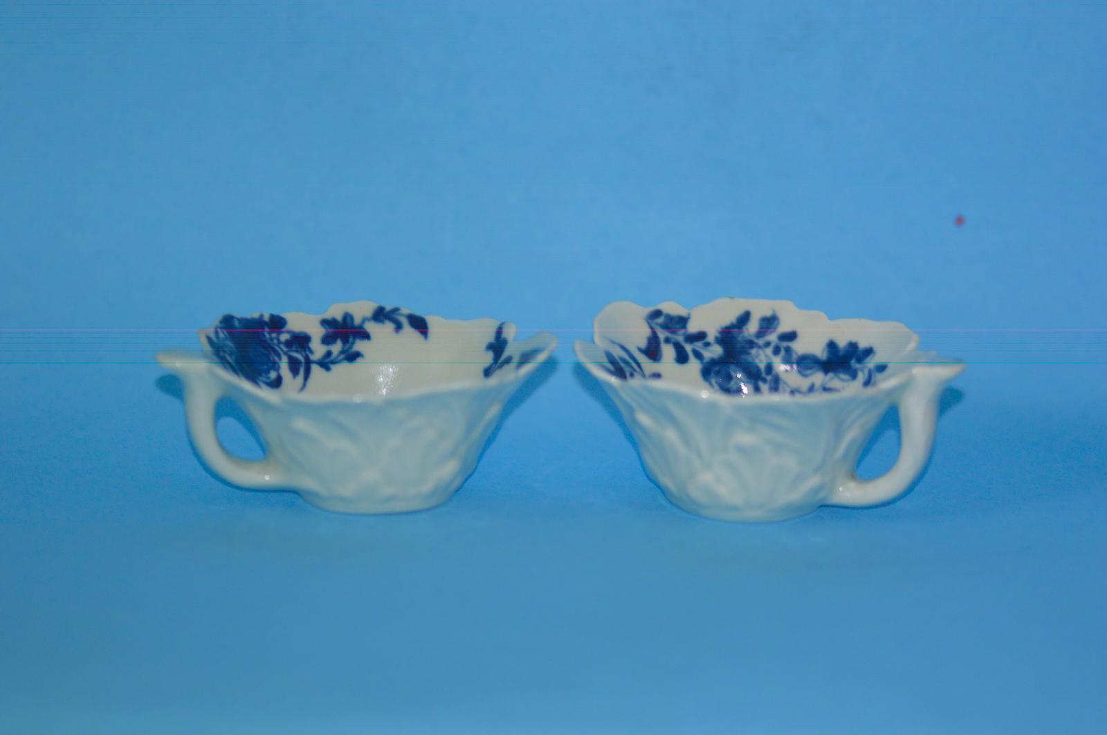 1758-60 Pair of Worcester Geranium Moulded Butterboats
