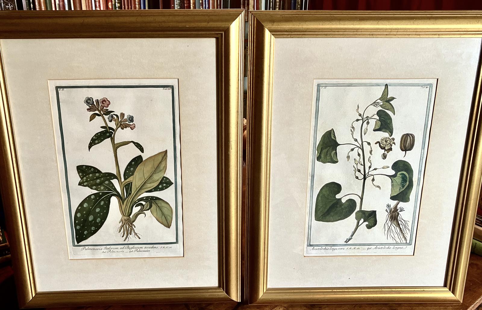 1780 Pair of Rare Botanical Engravings by Giorgio Bonelli Framed + Hand Coloured