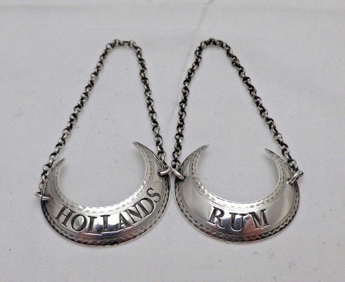 1793 Pair Georgian Silver Wine Ticket Decanter Labels Hollands & Rum Bateman