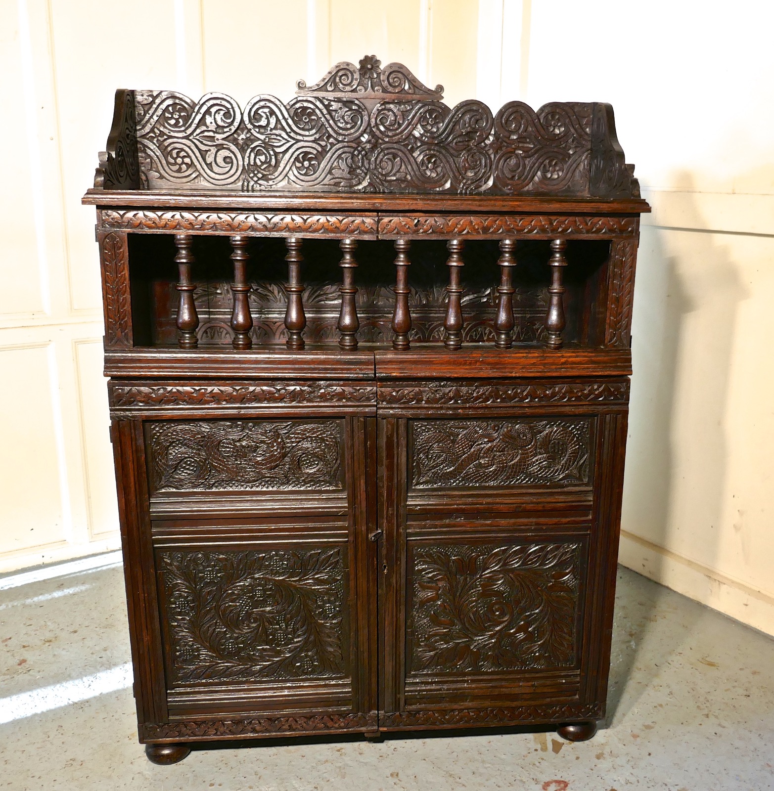 17th Century Antique Housekeepers Oak Food Cupboard, Bread Hutch